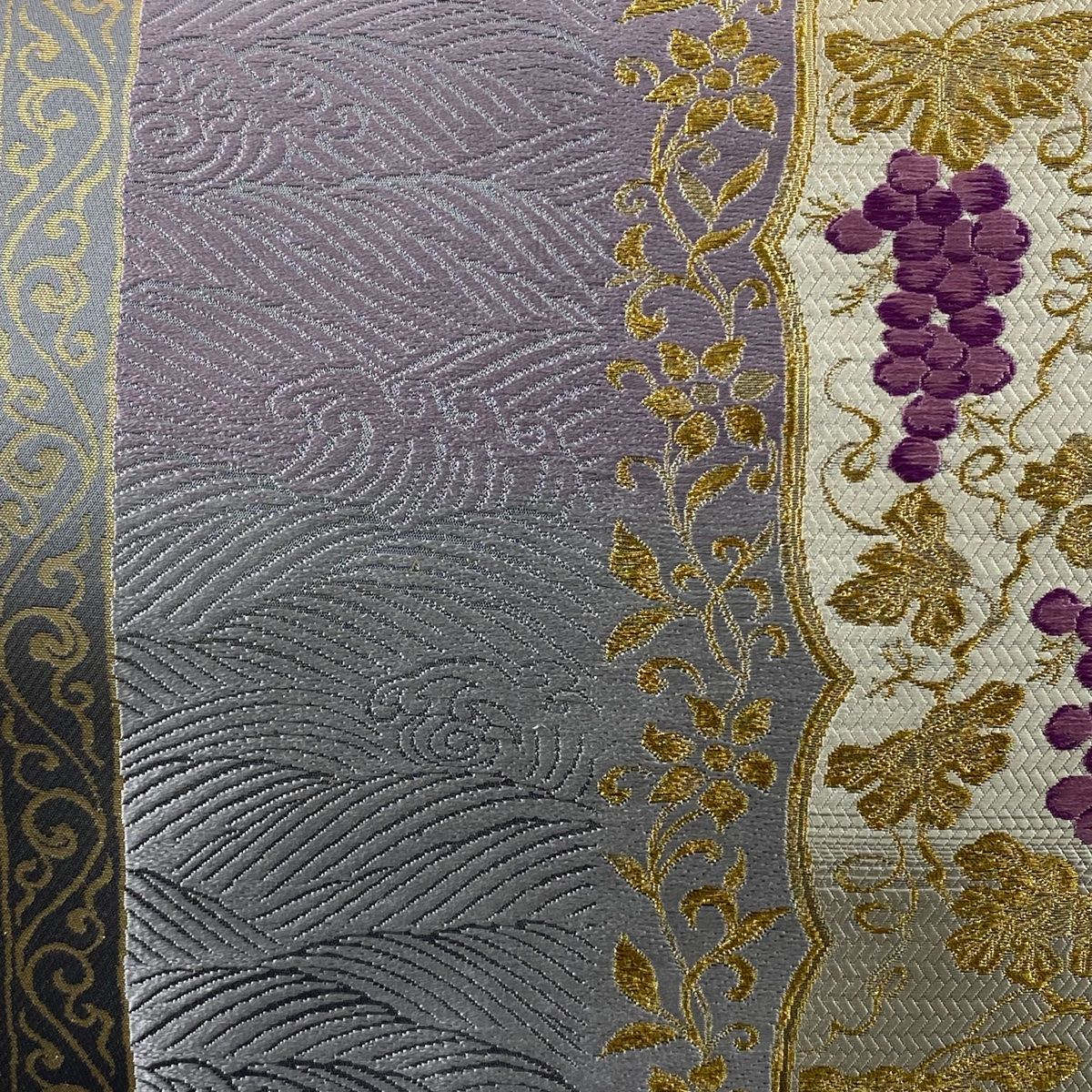 袋帯 じゅらく 落款 紫華麗人 葡萄 波 金糸 唐織 薄紫 お太鼓柄 正絹