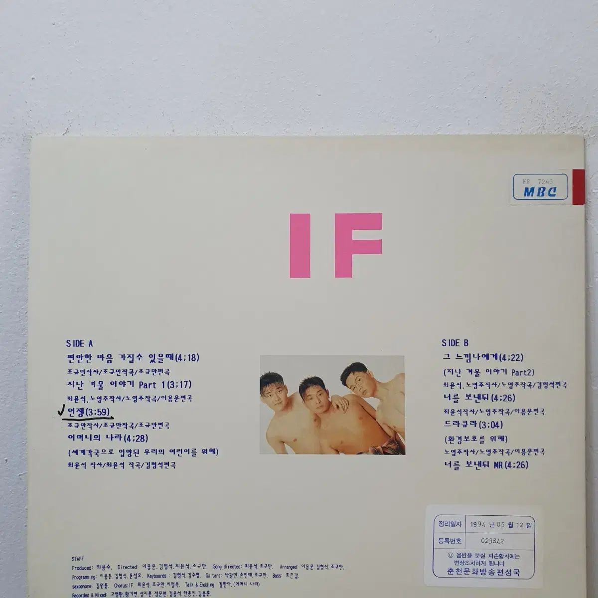 これはIFの最初のアルバムのLPレコード版です。1993年にリリースされ、チョ・キュマンがこのアルバムに参加しました。写真でわかるように、保管状態は良好です。