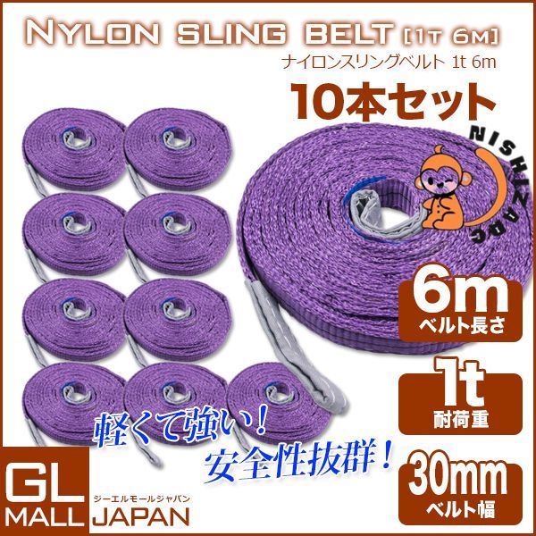 強度 耐荷 耐久性に 10本セット ナイロンスリングベルト ベルトスリング スリングベルト 荷上げ 1 t 1000 kg 6 m