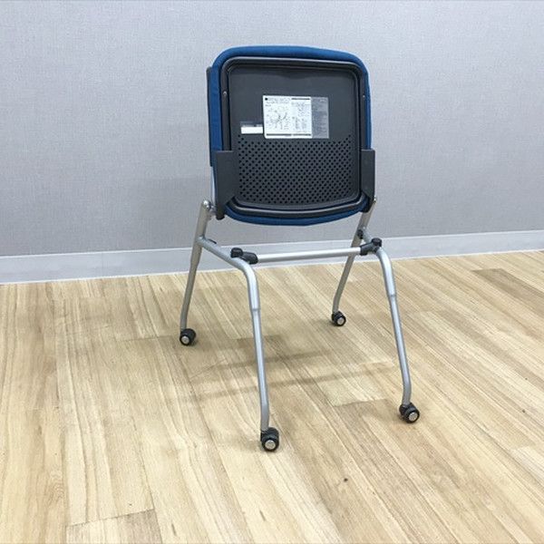 スタッキングチェア 肘無 プロスタック 背パッドタイプ キャスター付 会議椅子 オカムラ コバルトブルー