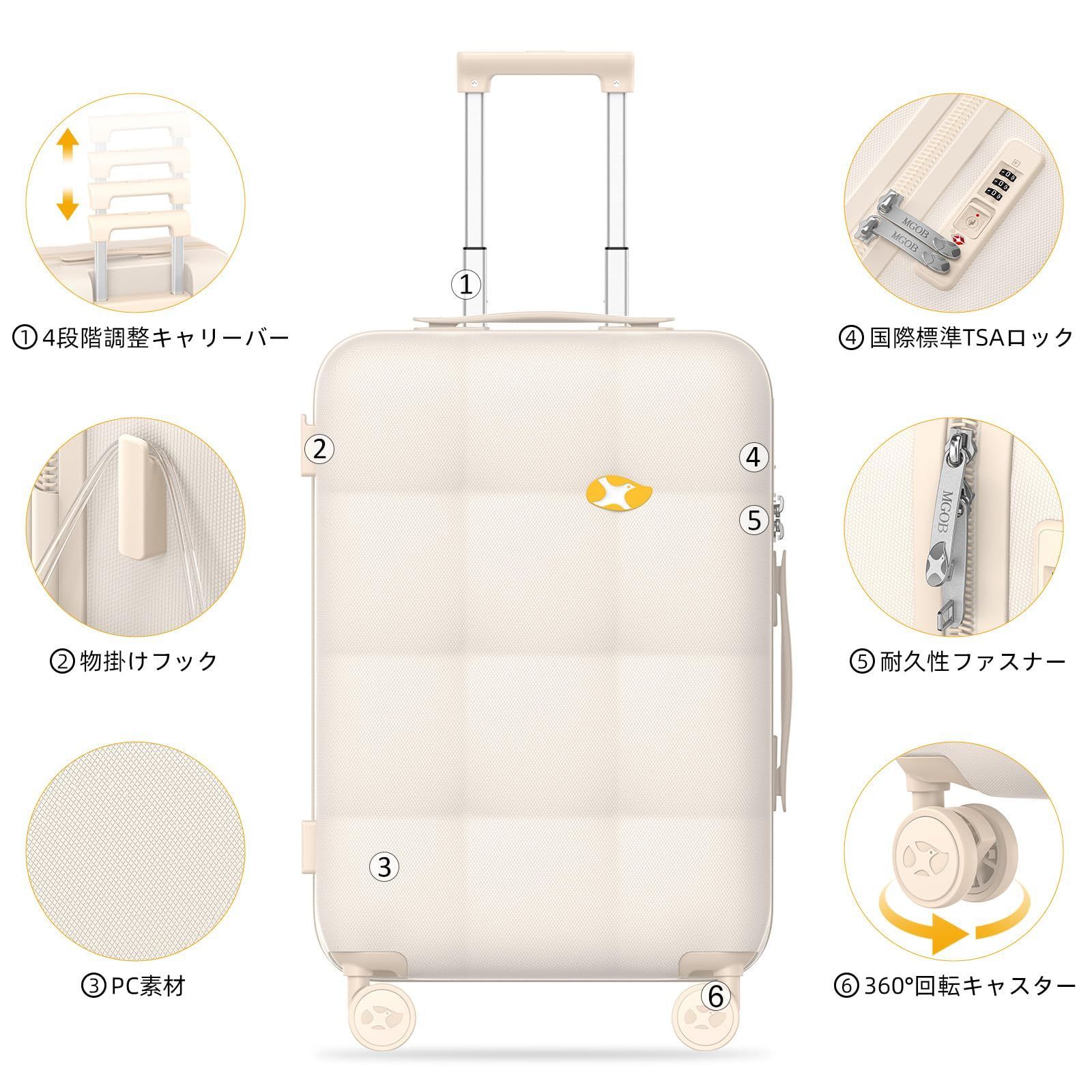 数量 Sサイズ ベージュ 45 L 1 4泊向き 出張 ビジネス 旅行 ファスナータイプ TSAロック ダブルキャスター 静音 耐衝撃 フック機能 超軽量 キャリーバッグ 機内持ち込み スーツケース キャリーケース MGOB