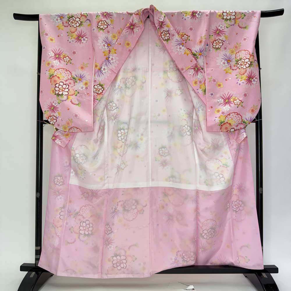 二尺袖 卒業式着物 ピンク 裄67 cm Lサイズ 袴用着物 化繊 4686