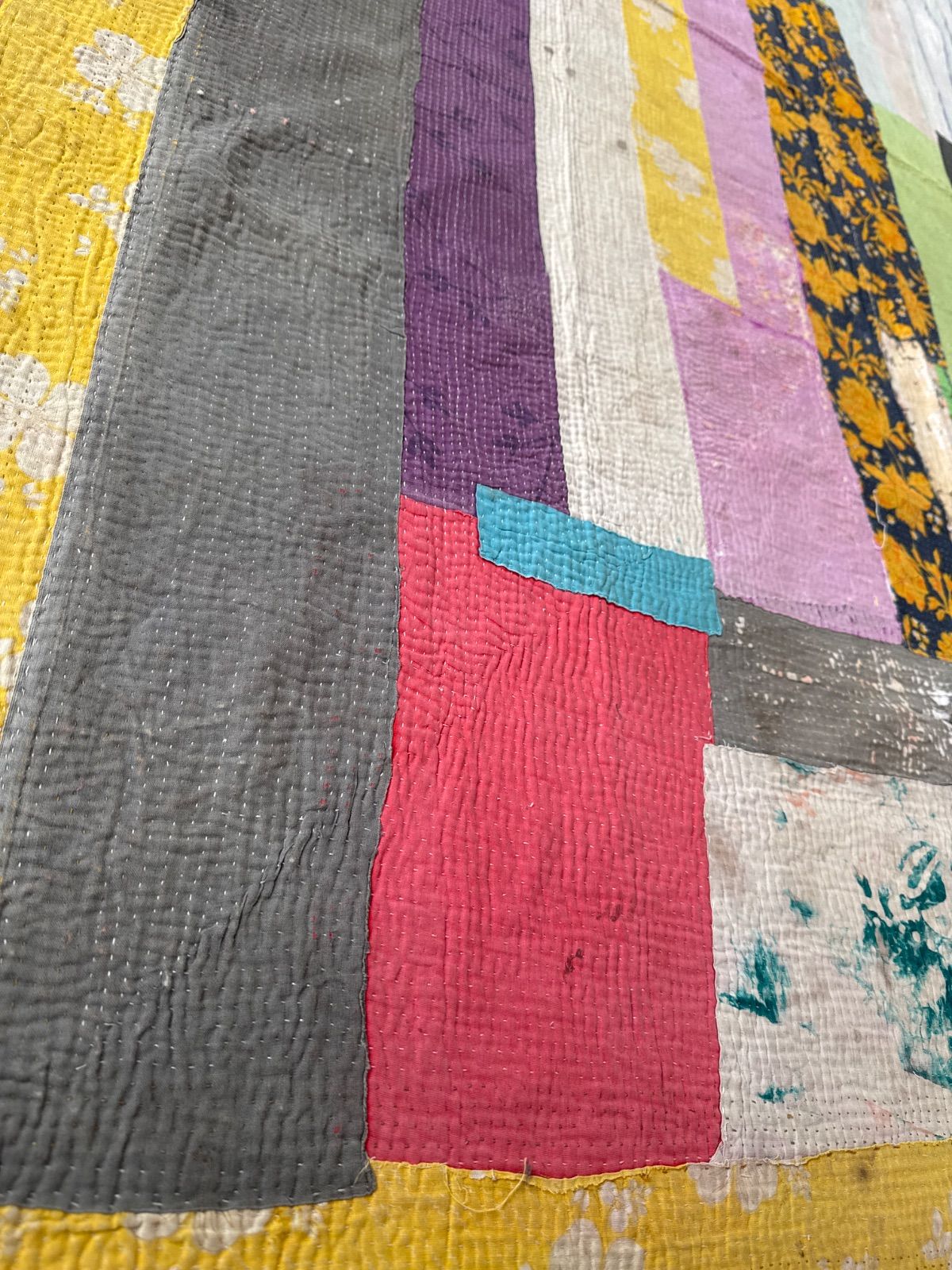G 072 グドゥリー マルチカバー マルチマット ラグ ヴィンテージ カンタ刺繍 ボロ インド ビンテージ BORO アンティーク シャビーシック ラリーキルト 手縫い 刺し子 ハンドメイド 刺子 絨毯 はぎれ 古布 マルチ