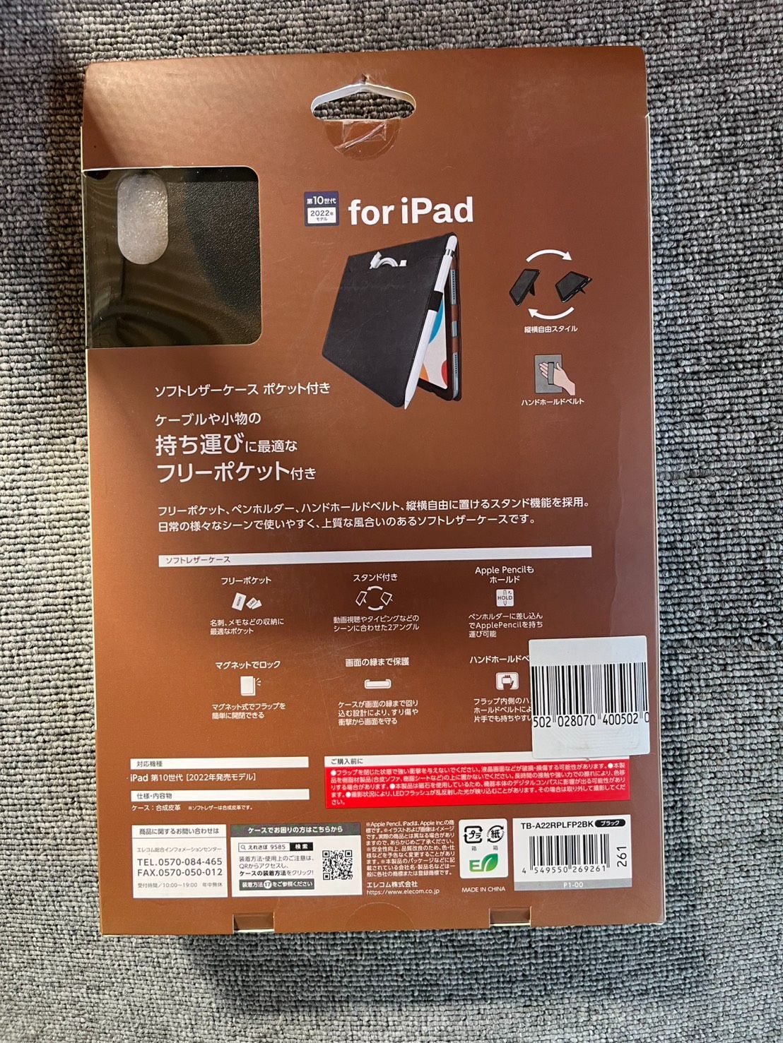 エレコム(ELECOM)製のiPad(第10世代・2022年モデル)専用ソフトレザーケースです。