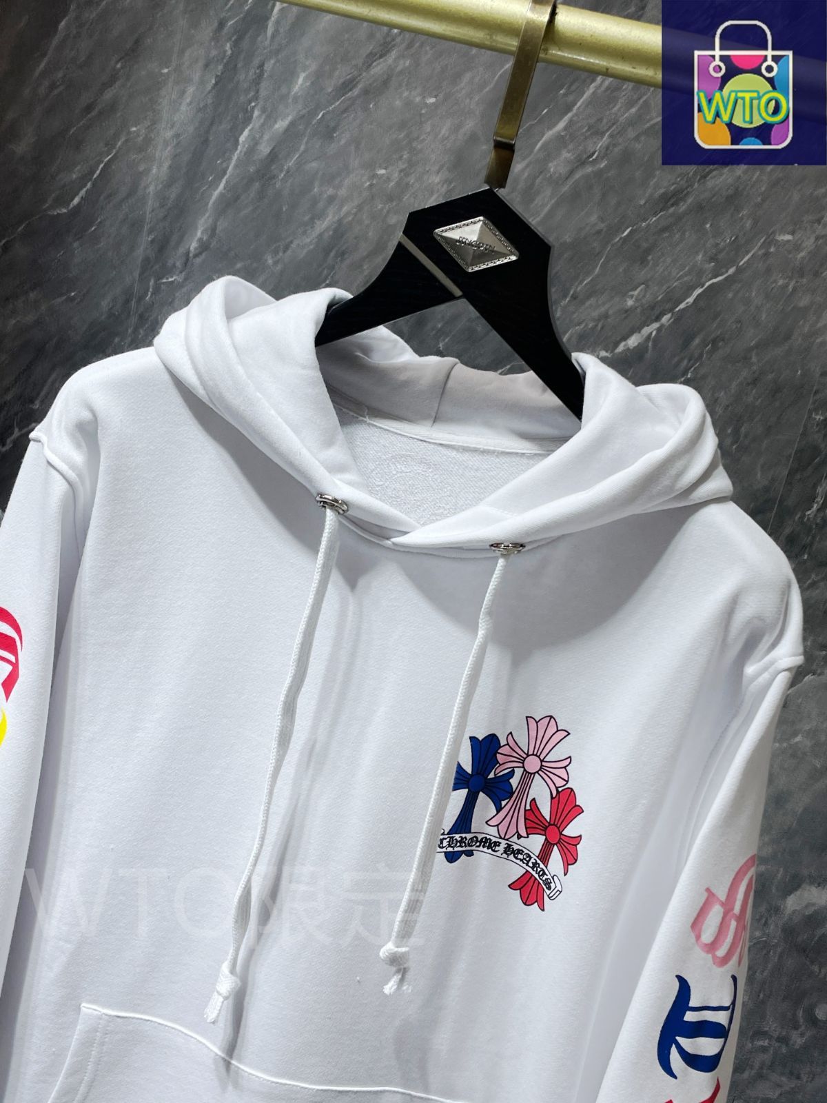 Chrome Hearts メンズ フーディー カラフルクロス プリント ブラック ホワイト S-XL -WTO輸入1