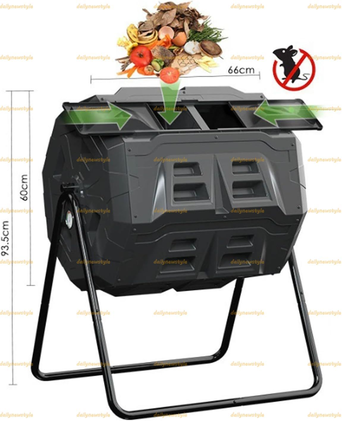 独立したデュアルビン構造:コンポストビンは、新鮮な廃棄物の追加と成熟したコンポストの熟成を同時に可能にし、継続的かつ効率的なコンポスト化を保証します。