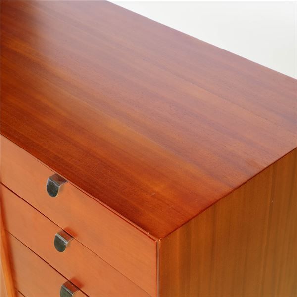 ・1950年代のデンマーク家具をイメージ。フチのVカット。ちょっと赤い、艶のある仕上げ。美しい木目。高級材マホガニーの突板を使用して北欧ヴィンテージ家具の雰囲気に仕上げました。