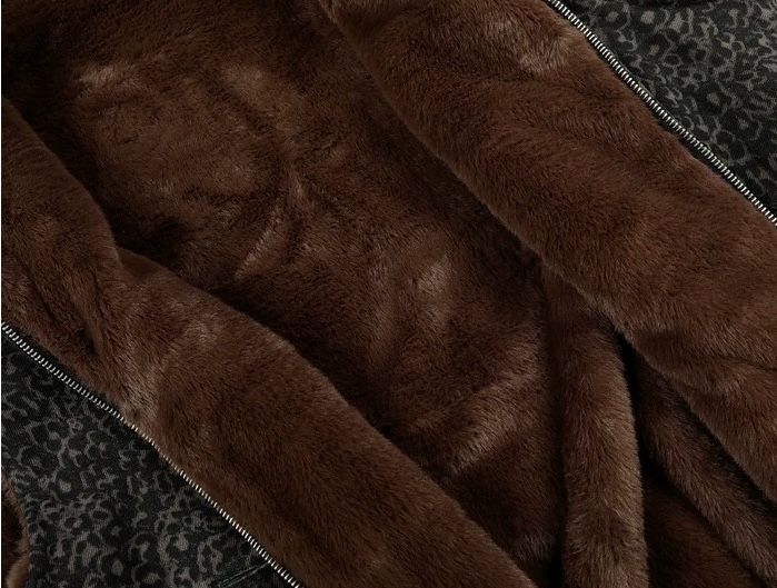 ♥ h アメリカンハイストリート レオパード襟 × ヴィンテージ風プリント ボア中綿ベスト 男女兼用 | 冬用 厚手 ふわもこ裏地