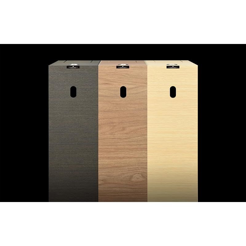 たっぷり収納できる20Lクラスの大容量ながらも、リビングで使えるスリムさとスタイリッシュさを兼ね備えたダストボックス。 リビングで使う大きめサイズのダストボックスは、キッチン用ペールのような無骨で圧迫感のあるものばかり。収納力はたっぷり欲しけれどデザイン性も重視したい。そんなお声にお応えできるリビング用の大型ダストボックスが誕生しました。幅はしっかり抑えた14.8cm。高さをもたせることで20Lの容量を実現。家具やソファの横など、隙間を利用した置き方にもオススメです。シックな木合板パネルを使ったスリムなフォルムで見た目もすっきり。分別などの2台置きでもお部屋に美しくコーディネートできます。天板カバーは片手で後方へスライドして開く方式。タツクラフトが開発したバスクキッチンペールでおなじみの方式ですが、このスリムタワータイプにも採用しました。