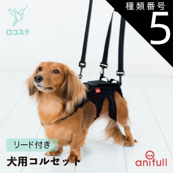 種類5 Mサイズ 黒 ブラック わんコル 持ち手つき アニフル 犬用 犬用コルセット コルセット 犬 術後 介護 腰 腰椎 背骨 安静 固定 制限 歩行補助 補助 日常 ソフトタイプ ソフト ケージレスト