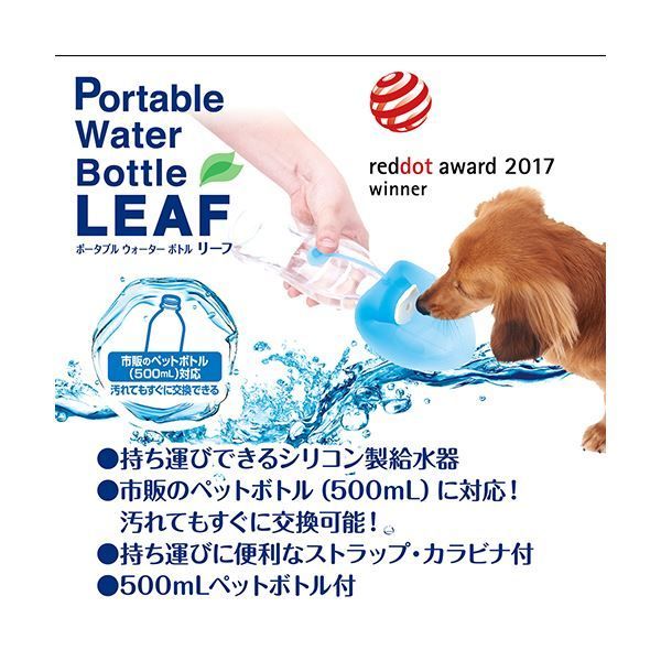 まとめ ポータブルウォーターボトル リーフ ブルー ペット用品 ×