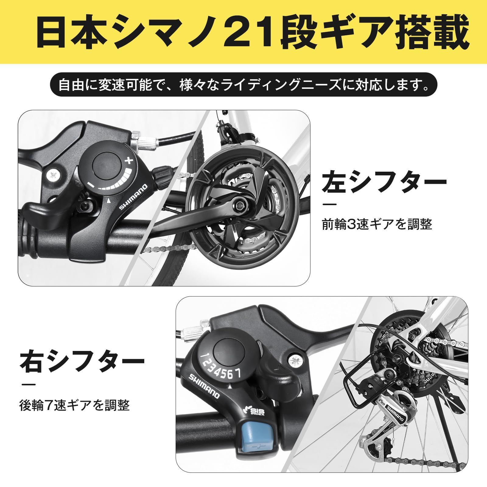 Mixiu クロスバイク シマノ製21段変速 自転車 700C 27インチ相当 高炭素鋼フレーム 軽量 クロスバイク 男女兼用 通勤 通学 旅行 街乗り マウンテンバイク 空気入れ付き、前後泥除け、ワイヤーロック、ライト、反射板、コップホルダー