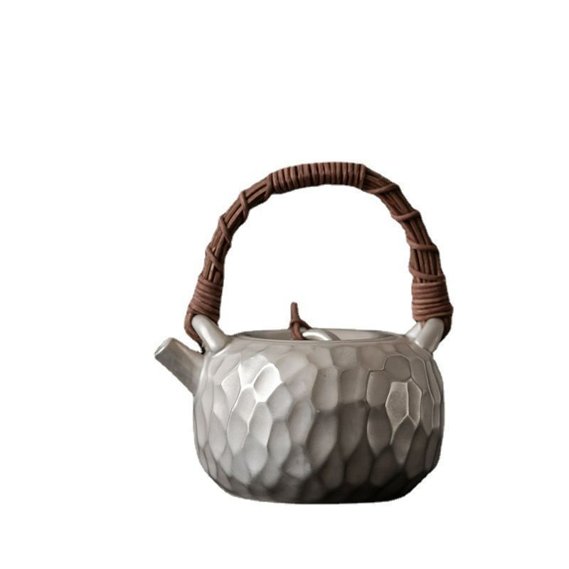 手手鎏の銀壺鎚紋提梁壺工夫茶器陶磁文人泡茶壺単壺手作