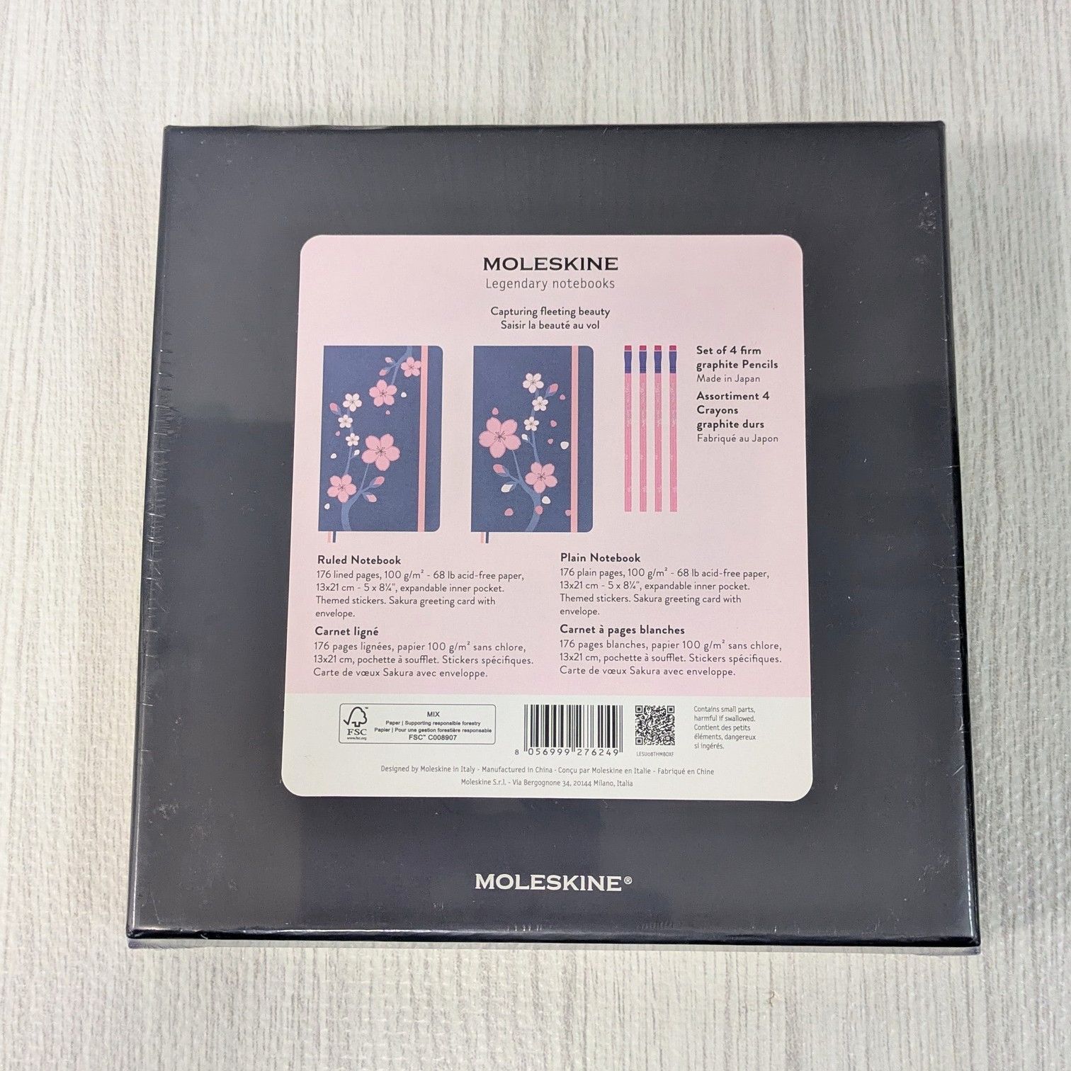 版 鉛筆 モレスキン ノート2冊 ギフトセット 藍色カバー 淡いピンク 桜柄