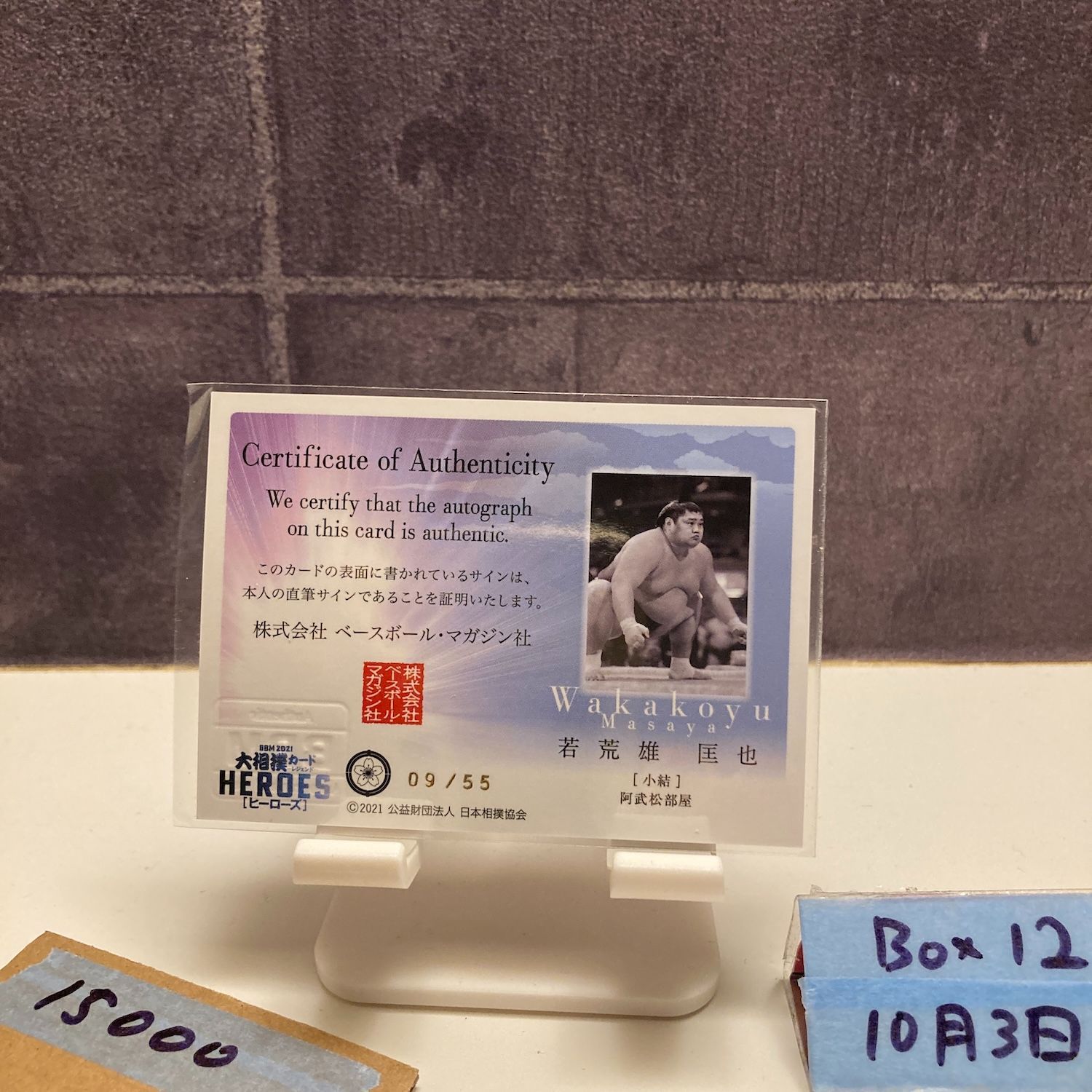 2021 BBM 若荒雄匡也 09/55 直筆サインカード 阿武松部屋 HEROES Purple