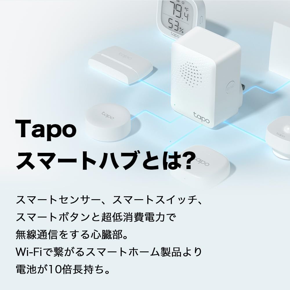 [スマートハブ Tapo H100] 省電力無線規格Sub-1GHzをWi-Fiに変換し通信。スピーカー搭載。19種類の音色と3段階の音量調整にも対応しています。