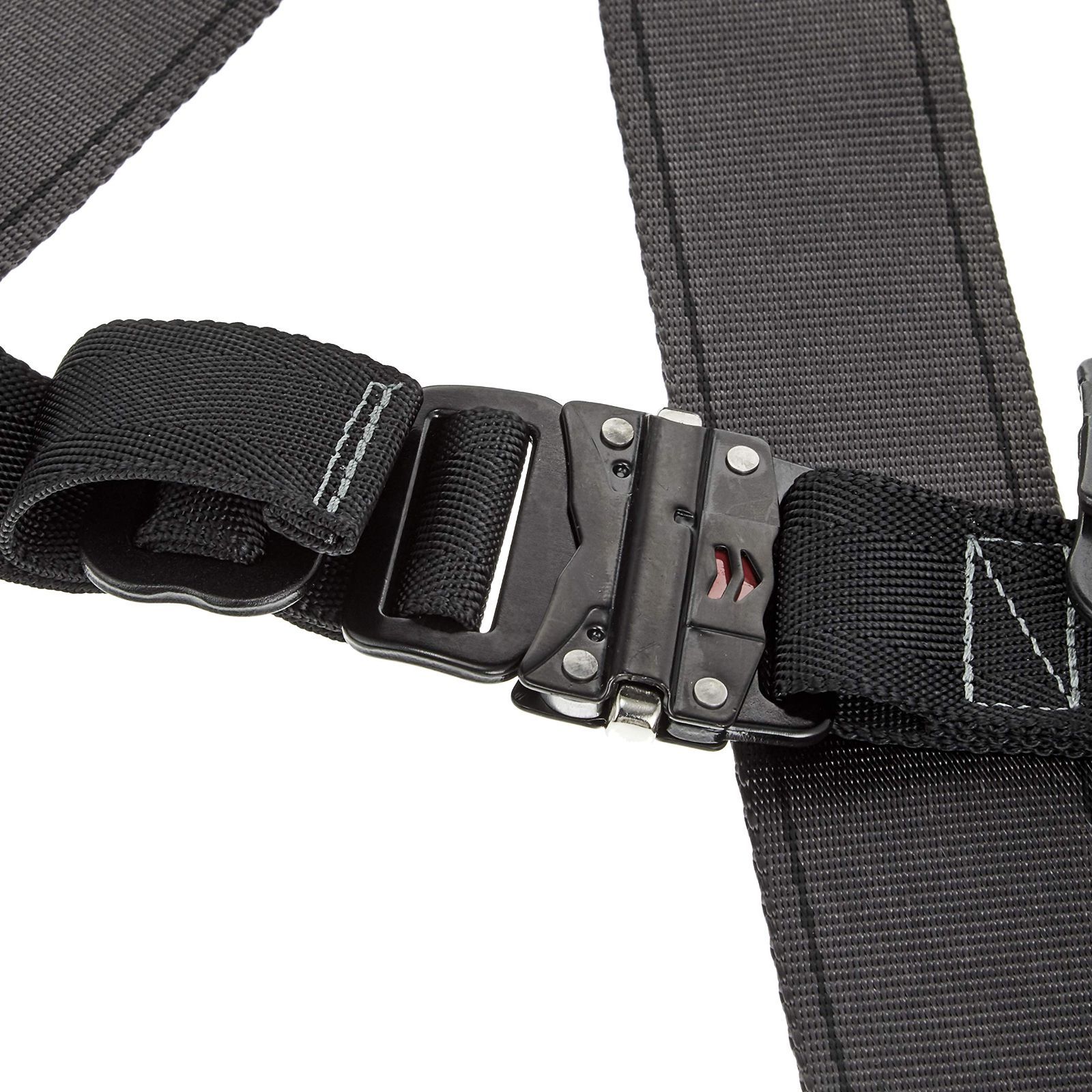 付属の固定金具を使用して、お手持ちの胴ベルトをハーネスに固定することが可能です。