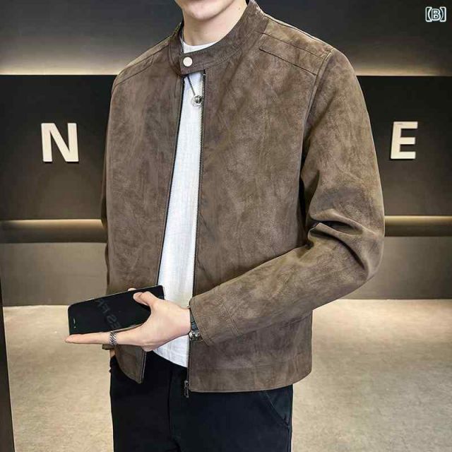 2 XL 秋冬 コーデ メンズ 服 シンプル ファッション オシャレ 大人 かっこいい 大きいサイズ ストリート 紳士服 スリム ジャケット スエード ライダース スタンド トップス