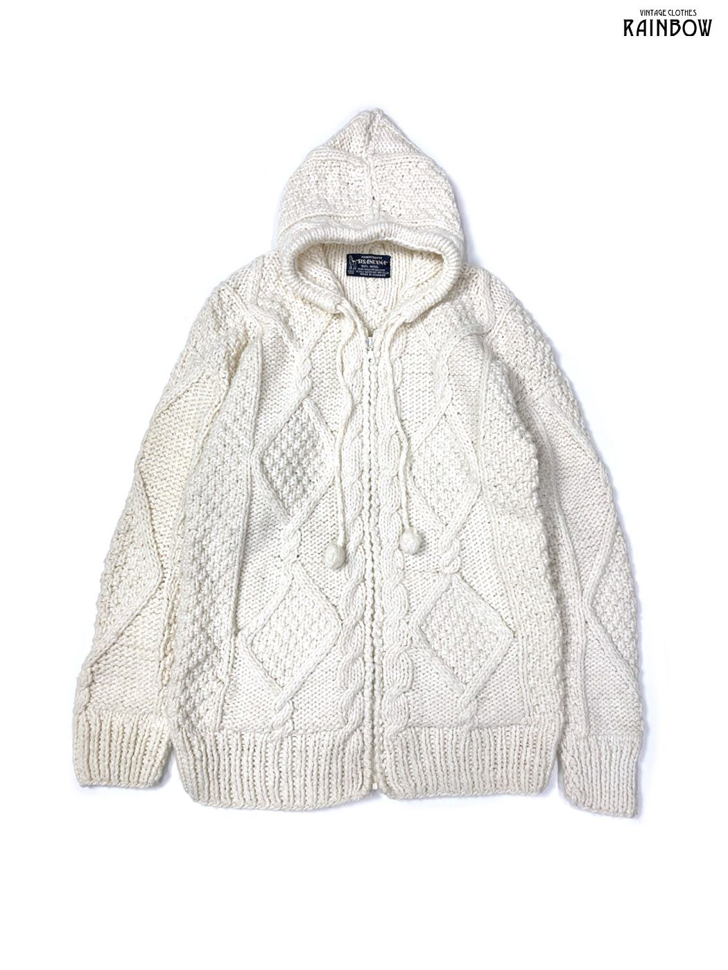 #ニット #ニットアウター #ロングスリーブ #白 #無地 #アラン #フード付 #前開き #ナチュラル #シンプル #ウール #ニットアウター