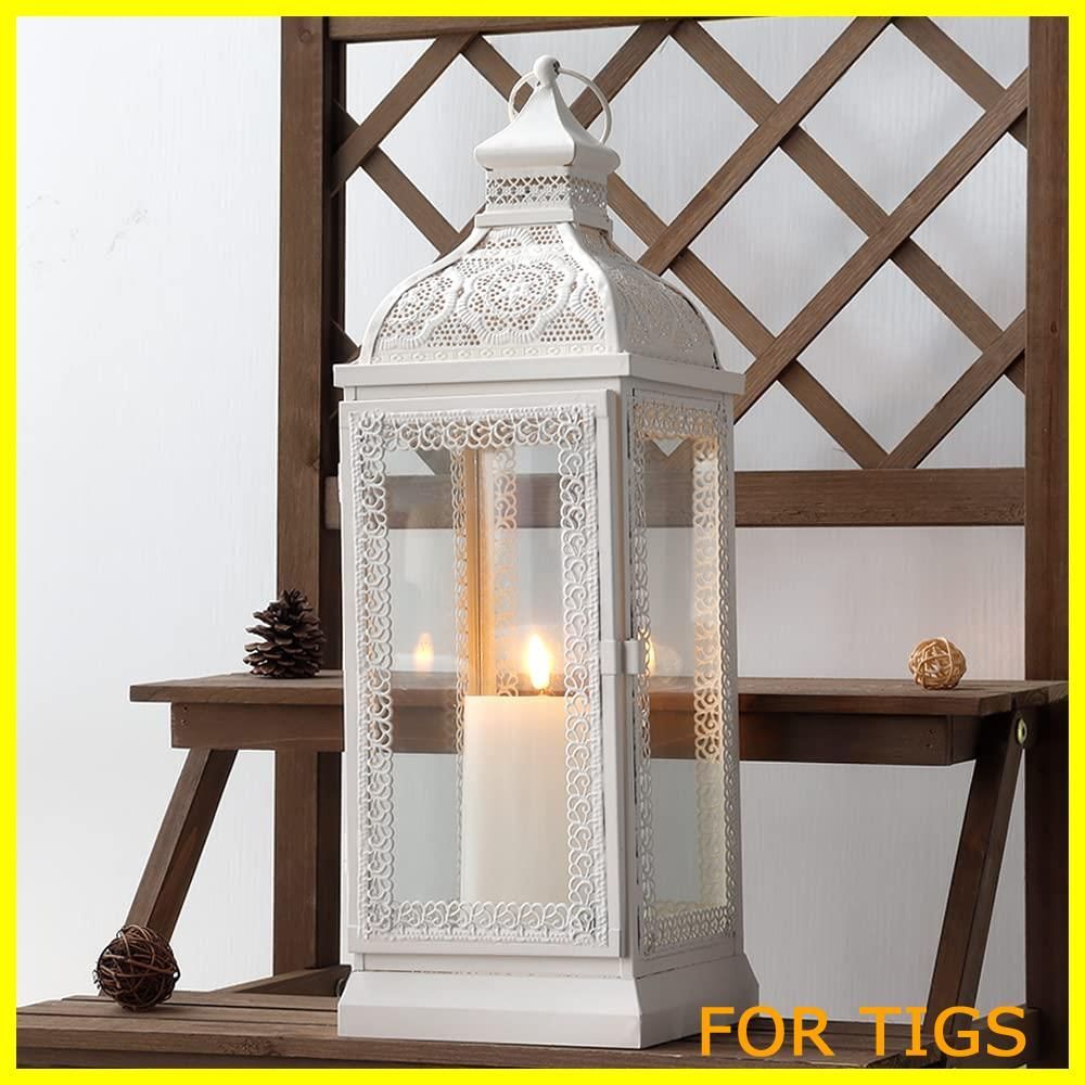 TRIROCKS キャンドルホルダー 高さ46cm 古キャンドルランタン メタル 燭台 ロウソクランタン インテリア 雰囲気作り お部屋 オフィス 結婚式 誕生日 プレゼント 室内 室外 おしゃれ 間接照明 (ホワイト)