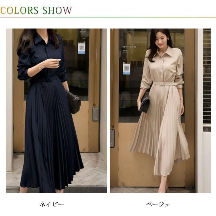 長袖 ワンピース プリーツ プリーツワンピース レディース 春 夏 秋 冬 ロング マキシ ロングワンピース マキシワンピース シャーリング きれいめ ウエストベルト付き jzxd 1301