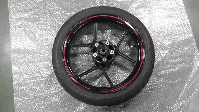 Ninja 400R の フロントホイール タイヤ:新品です、画像をよく見て御判断下さい。実動車から外したパーツです。:このショップは法人で運営されています、価格交渉はいたしませんので、仮に交渉をいただいても返答できません、部品の互換に関しても同様です、型式の違う車両での動作確認をしたことがありませんので分からないのです。必要ならばいきなり購入下さい事前報告不要です。質問はできるだけ1回でお願いします重複した内容の場合割愛させて頂きます。業務時間外「つながらない権利」のご理解よろしくお願いします。複数のモールで販売してますので早い者勝ちのご理解もお願いします。