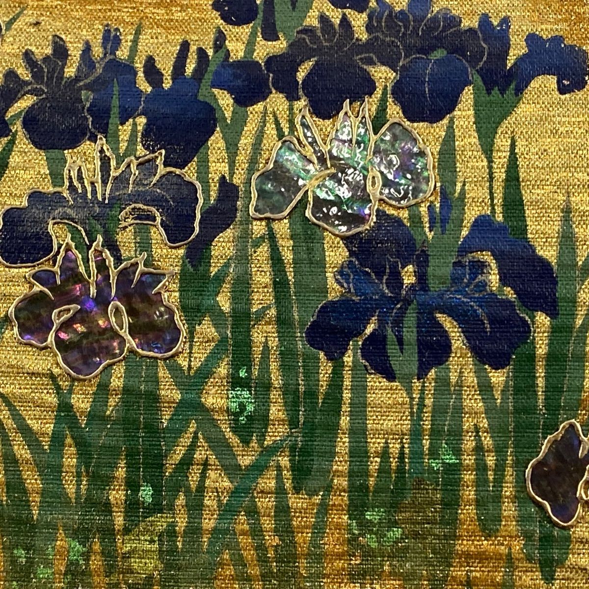袋帯 やまと 菖蒲 金色 お太鼓柄 正絹