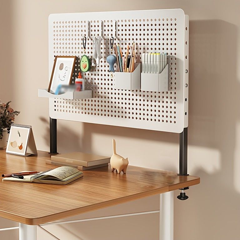 高さ調節可&省スペース メタル デスクオーガナイザー 高さ最大68.58 cm クリップオン スタンドアロン式 オフィス収納ユニット 収納ボックス付棚 ホームオフィス スタンディングデスク対応 組立不要 ホワイト パネル39.7 59.7