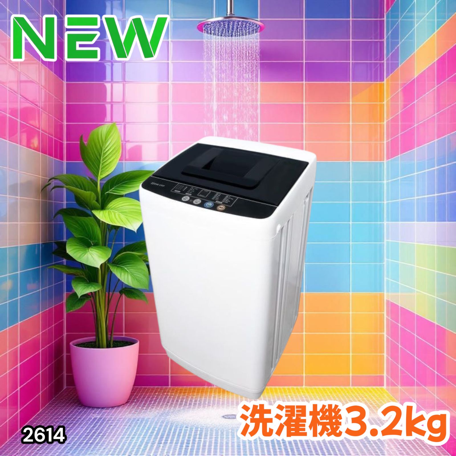 2614 縦型 全自動 洗濯機 3.2 kg ホワイト 1人暮らし 強力水流洗浄 ほぐし運転搭載 簡易乾燥機能付き 選べる洗濯10コース 予約タイマー機能 コンパクト 一部地域 別途配送料有
