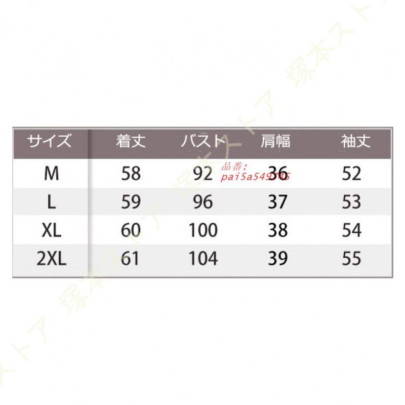 2XL:着丈61CM 肩幅39CM バスト104CM 袖丈55CM