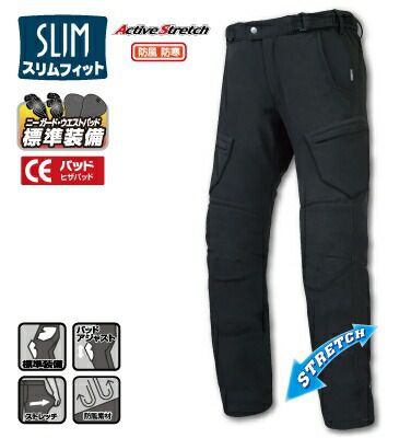 腰にウレタンパッド、ヒザにはCE規格のプロテクションパッドを標準装備し、安全性にも抜かりはありません。 また、ライディング専用の立体構造のため、足を上げやすく、シートに座っても突っ張らない、ストレスフリーでロングツーリングでも疲れを知りません。