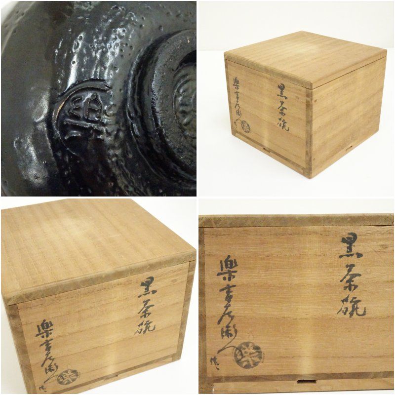 楽吉左衛門銘 黒楽茶碗 共箱 茶道 抹茶 おしゃれ 抹茶茶碗 抹茶碗 和食器 レトロ 茶器 骨董 茶わん 茶会 茶の湯 楽焼 秋