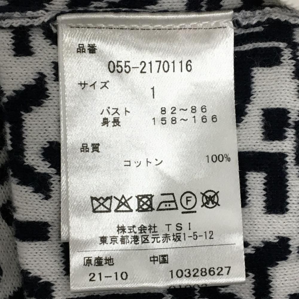 超 パーリーゲイツ セーター 白×ネイビー ロゴ総柄 コットン100% レディース 1 M ゴルフウェア PEARLY GATES