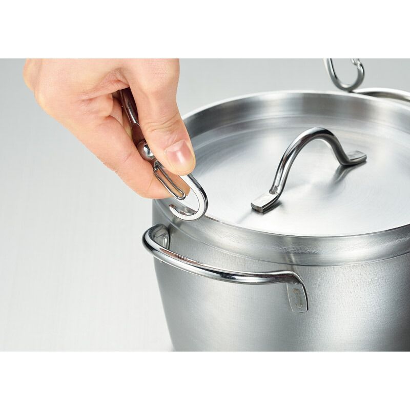 鍋の本体は、熱伝導性に優れたアルミニウムを耐久性と保温性に優れたステンレス鋼でサンドした3層構造(3LAYERS)。IHはもちろん、ガス火やオーブン調理、アウトドアでの焚火や炭火にも対応します。使い始めのシーズニング(油慣らし)の必要が無く、蓋はステンレス3mm厚と重いので、アウトドアでのご飯の炊き込みや煮込み調理に最適です。ツルは着脱式でアウトドアだけでなく、インドアでも活躍します。