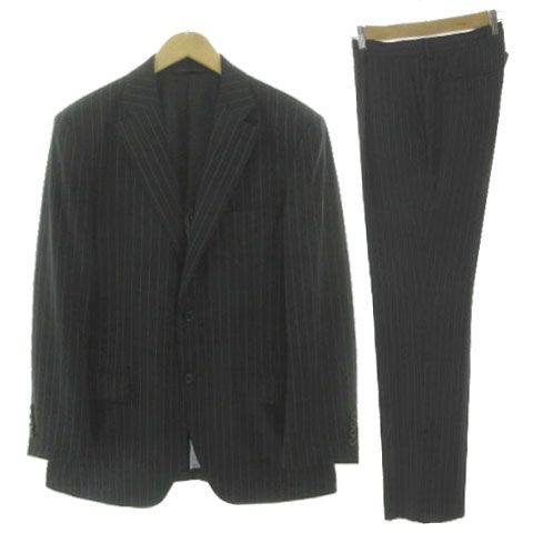 【仕様】スーツ 8005200138-98-000 日本製 ストライプ ジャケット テーラードカラー シングル 2つボタン留め フロントポケット2つ 胸ポケット、内ポケットあり 背抜き サイドベンツ パンツ スラックス タック 前後にポケットあり ジップフライ、ボタン、キーフック、ボタン留め