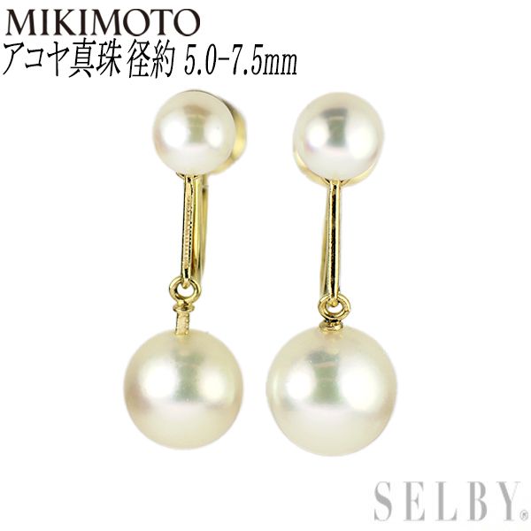 ミキモト K 14 YG アコヤ真珠 イヤリング 径約 5.0-7.5 mm