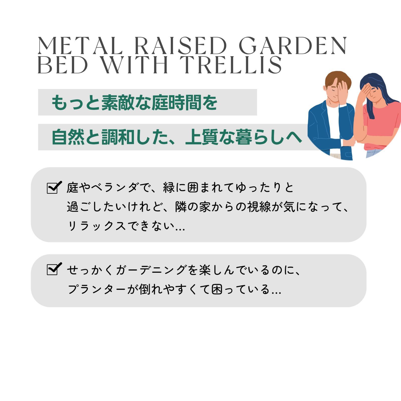 •【目隠しフェンス】自然の美しさと機能性を兼ね備えたプランター付きフェンスで、目隠しフェンスとして活用できます。プライバシーをしっかり守りながら、デザイン性の高い植物を育てることができます。