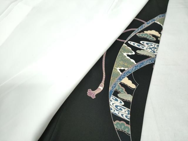平和屋着物 豪華黒留袖 駒刺繍 文箱飛鶴扇御所車浜松花唐草文 金彩 正絹 yc