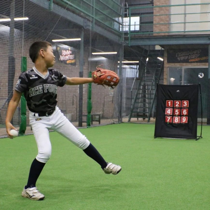 ◇ストライクゾーンに投げ込んだボールは、背面のネットに収納されます