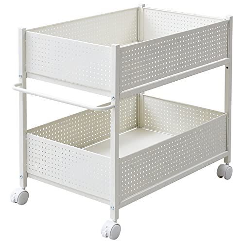 幅44cm_奥行75㎝ 山善 押入れ(クローゼット)収納 ラック 幅44×奥行75×高さ64.5cm 取っ手 ストッパー付きキャスター 上段下段かご 横板が取り外せる 組立品 ホワイト/ホワイト OPR-7544(WH/WH)