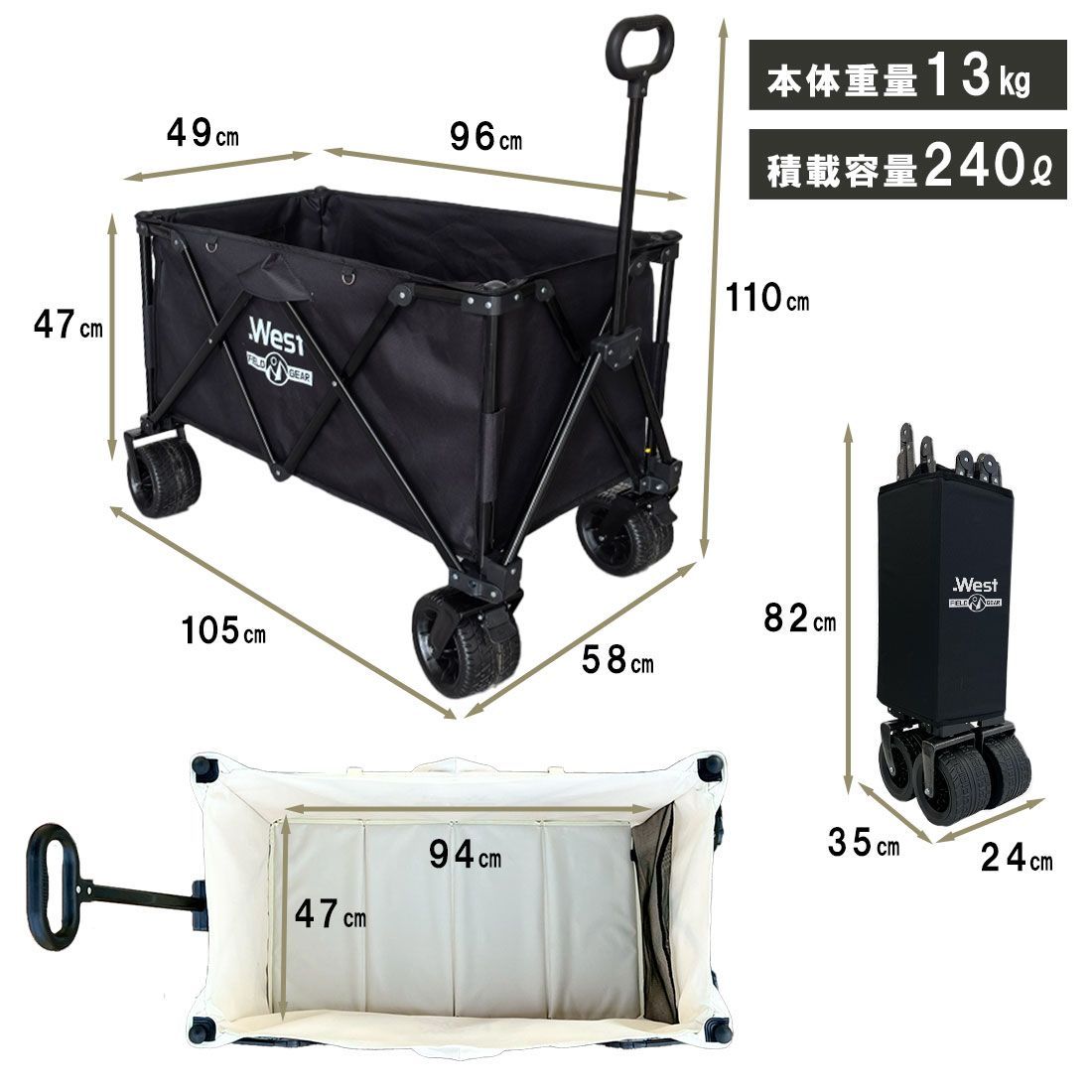 キャリーワゴン キャリーカート 超 大容量 240 L 大型 4輪 アウトドアワゴン コンパクト アウトドアキャリー アウトドアキャリーカート アウトドアキャリーワゴン キャンプキャリーワゴン キャンプワゴン キャンプキャリーカート 折りたたみ ワイドタイヤ