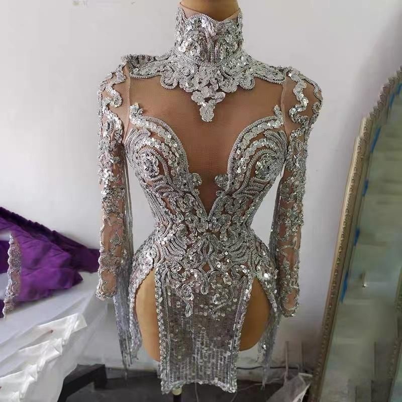 社交ダンスドレス ベリーダンス衣装 ゴールド ラメ フリンジ ラテンダンス ステージ衣装 セクシー スリット パーティードレス