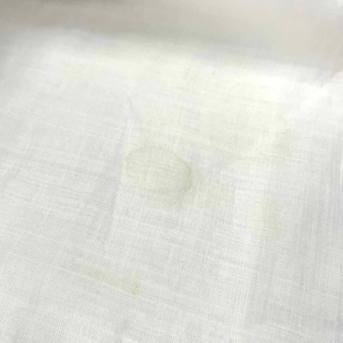 【状態について】衿に汚れ、前身頃・袖に大きいシミや黄ばみが多数あり使用感がございます。