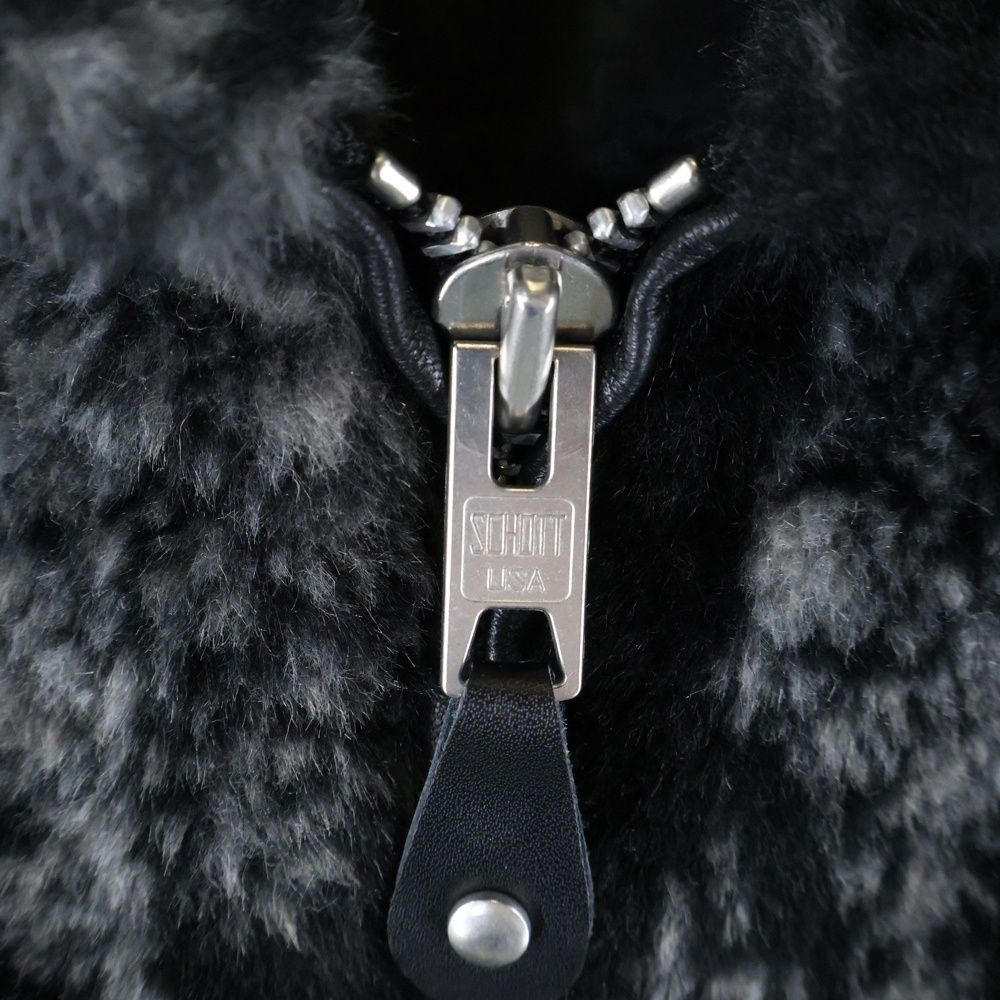SCHOTT ショット ウルフ柄 ジップアップ ファー ジャケット ブラック 782-4252013