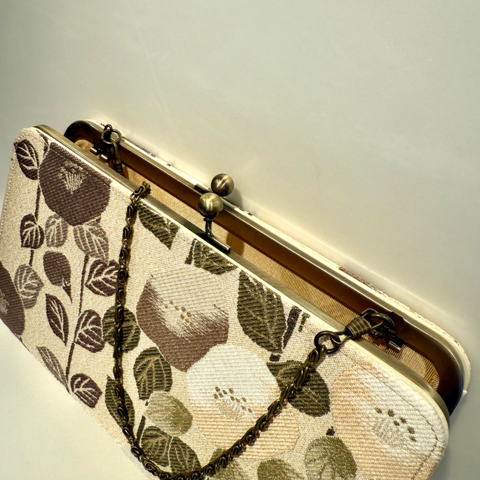 京都帯屋さん 正絹 皮 2 way がま口フォーマルバック大 万寿菊