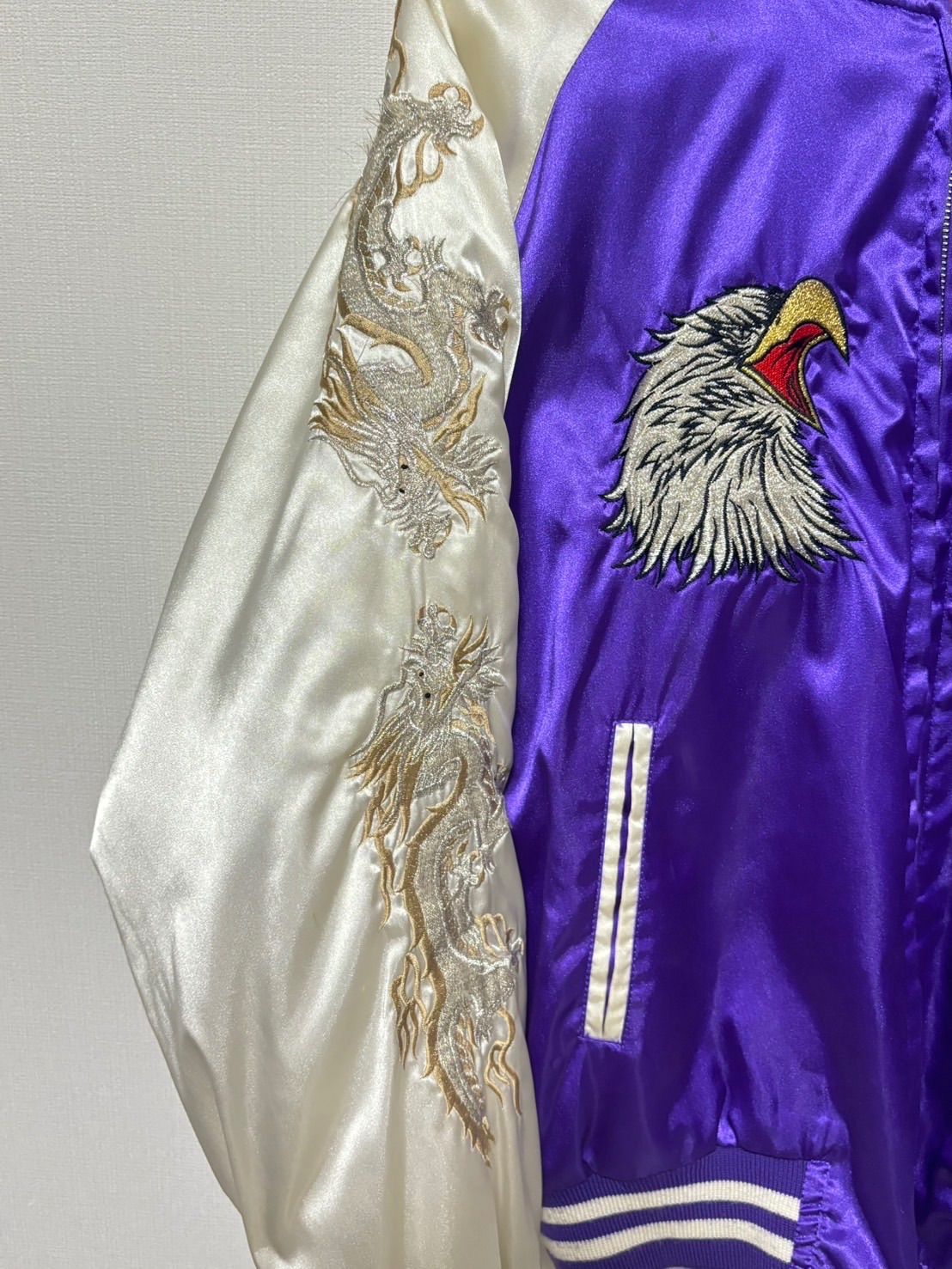 龍と鷲の豪華刺繍が施されたリバーシブル風スカジャン。
