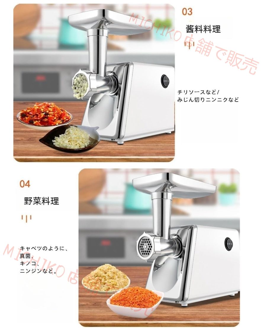 3in 1電動ミートグラインダーは、ソーセージ、ハンバーガー、クッベ、ミートボール、ミートソース、ピザなどを作るためのすべての粉砕ニーズを完全に満たすことができます。
