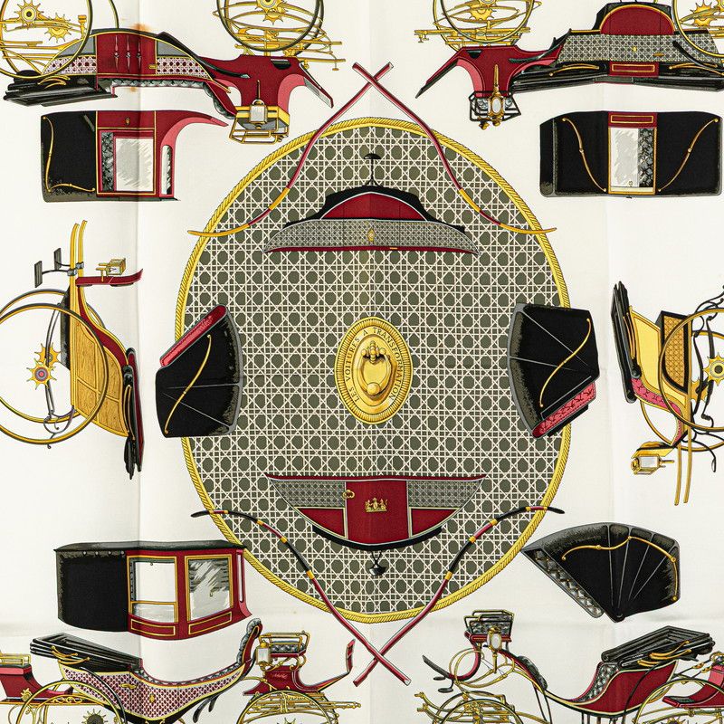 エルメス カレ90 LES A 折畳み式幌の馬車 ホワイト ワインレッド マルチ シルク レディース HERMES 1-0223302
