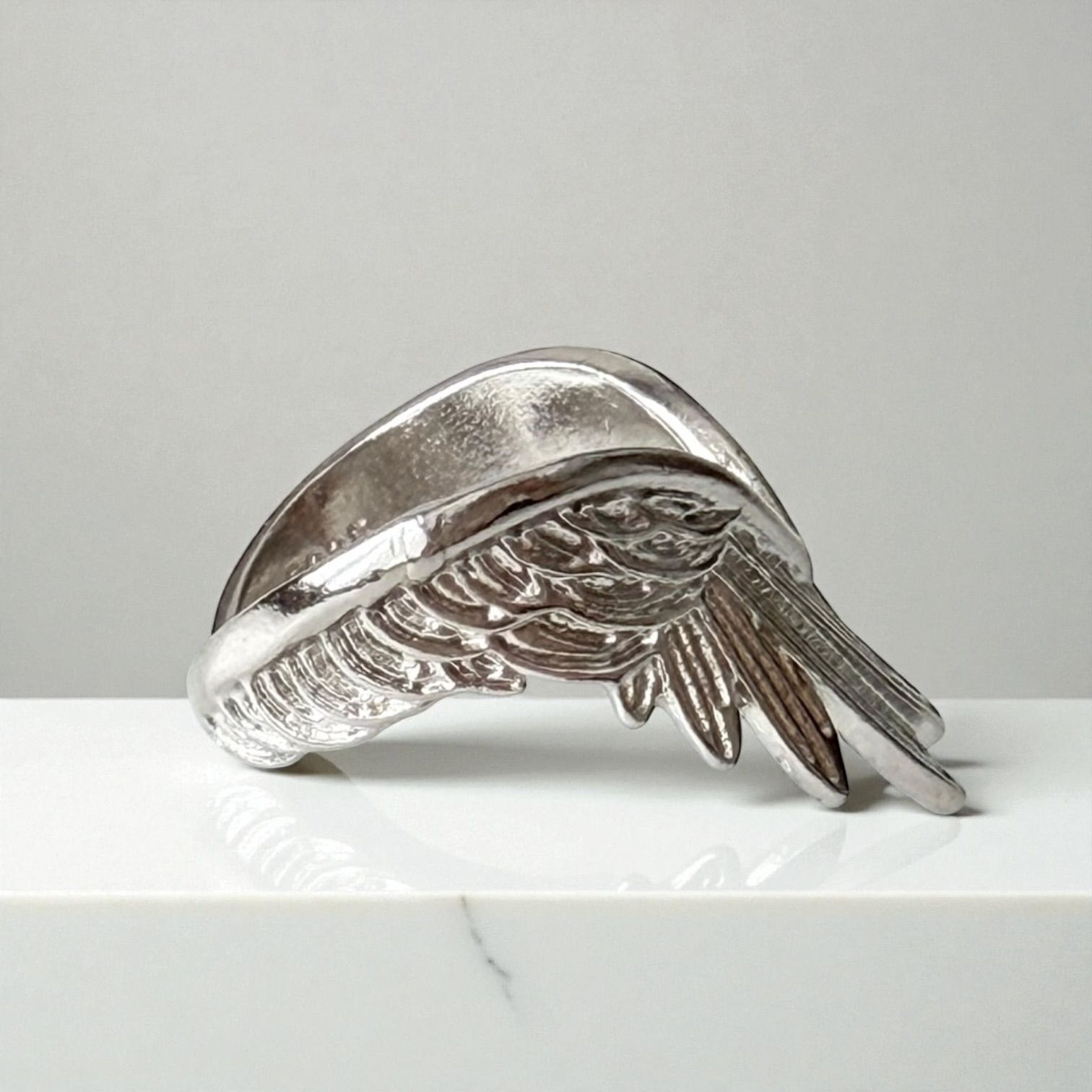 天空を司る神・ウラノスの力を宿した、力強くも優雅なフェザーデザインのシルバーリング。
