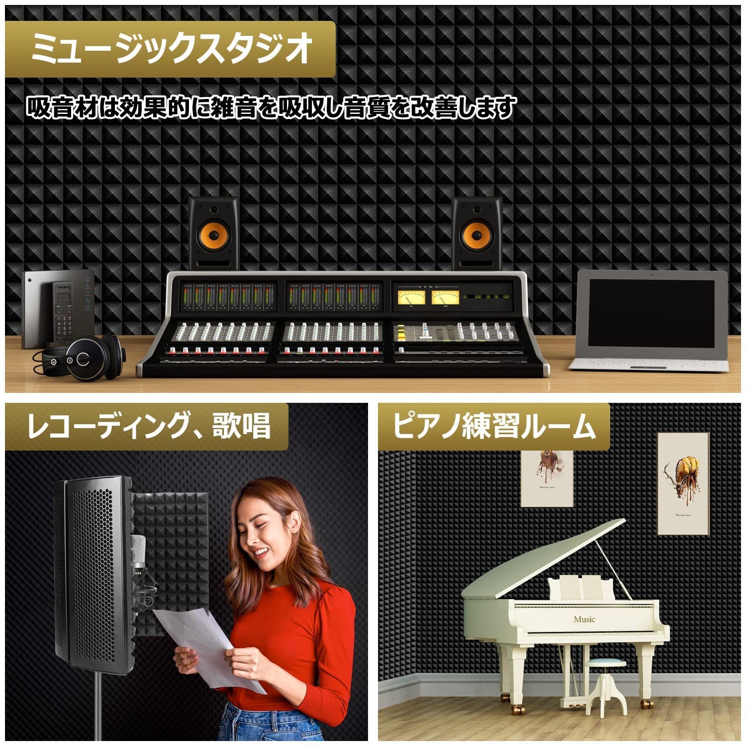 【エコかつ安全、応用範囲が広い】エコで耐燃性のあるウレタンフォーム素材でご安心ください。強力な両面テープが付属され、商品ページの操作説明を参考し、作業してください。適用場所もとても広くて、お部屋、ピアノ室、オーディオルーム、録音スタジオ、視聴室、オフィス、会議室などの場所に適用します。お好みに合わせてご使用ください。